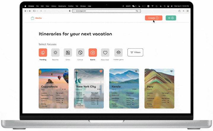 WeGo aims to simplify travel planning by providing a centralized platform that empowers travelers to create comprehensive and well-organized travel plans. From accommodations to activities, our platform covers it all. We also understand the importance of capturing and sharing memories, so we offer a seamless way to do just that.